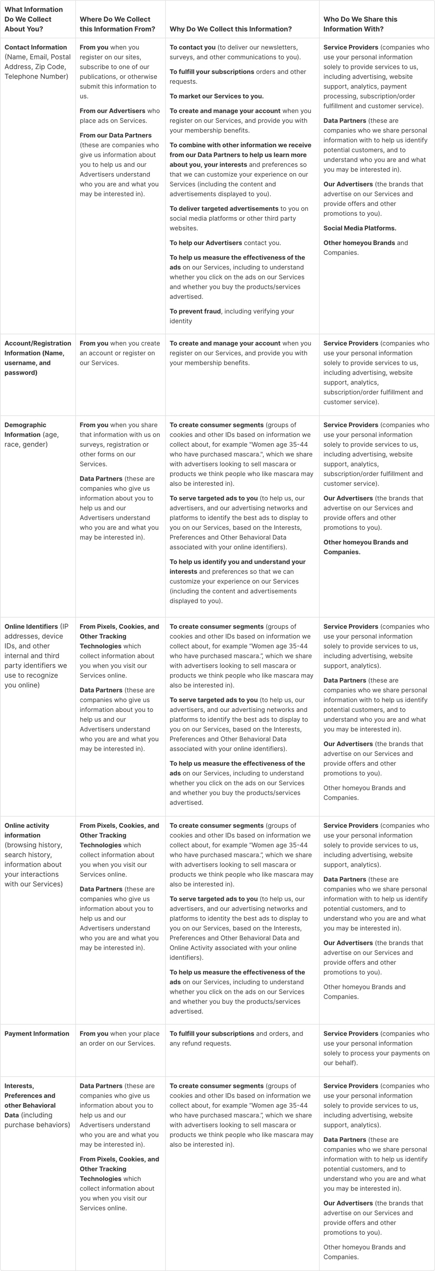 This section contains information on the personal information we collect about residents of California (our “California Consumers”), including the sources of that information, how that informed is used, who it is shared with, and the rights that California Consumers have under California law. Our collection of your information, our data sharing practices, and your privacy rights are discussed below.
